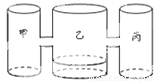 实验室里,水平桌面上有甲、乙、丙三个相 同高度的圆柱形容器(容器足够高),底面半径之比为1:2:1,用两个相同的管子在10cm高度处连通(即管子底部离容器底10cm),现三个容器中,只有乙中有水,水位高4cm,如图所示.若每分钟同时向甲和丙注入相同量的水,开始注水1分钟,甲的水位上升3cm.则开始注入 分钟水量后,甲的水位比乙高1cm.