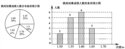 扇形统计图中a= ,初赛成绩为1.70m所在扇形图形的圆心角为