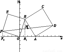 如图,在平面直角坐标系xOy中,动点A(a,0)在x轴的正半轴上,定点B(m, n)在第一象限内(m<2≤a).在△OAB外作正方形ABCD和正方形OBEF,连接FD,点M为线段FD的中点.作BB1⊥x轴于点B1,作FF1⊥x轴于点F1.