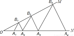 如图,∠MON=30°,点A1、A2、A3…在射线ON上,点B1、B2、B3…在射线OM上,△A1B1A2、△A2B2A3、△A3B3A4…均为等边三角形,从左起第1个等边三角形的边长记为a1,第2个等边三角形的边长记为a2,以此类推.若OA1=1,则a2017= ____________