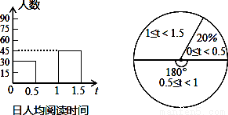 (3)在扇形统计图中,计算出日人均阅读时间在1~1.5小时对应的圆心角度数.