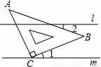 如图,直线l∥m,将含有45°角的三角板ABC的直角顶点C放在直线m上,若∠1=25°,