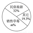 (2)如右图,用扇形统计图表示民俗旅游、销售草莓及其它方面收入的分布情况,则m= ;
