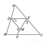 如图,在三角形ABC中, D,E,F三点分别在AB,AC,BC上,过点D的直线与线段EF的交点为点M,已知2∠1-∠2=150°,2∠ 2-∠1=30°.