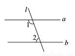 如图,直线l与直线a,b相交,且a∥b,∠1=110º,则∠2的度数是 ( )