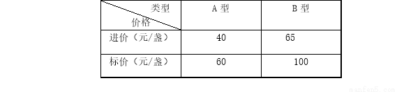 (10分)某商场用2500元购进了A、B两种新型节能台灯共50盏,这两种台灯的进价,标价如下表所示: