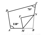 如图,四边形ABCD中,点M、N分别在AB、BC上,将∆BMN沿MN翻折,得∆FMN,若MF∥AD,FN∥DC,则∠D的度数为_________º
