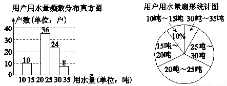 (2)补全频数分布直方图,求扇形图中“15吨~20吨”部分的圆心角的度数;