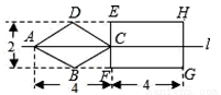 如图,直线l是菱形ABCD和矩形EFGH的对称轴,点C在EF边上,若菱形ABCD沿直线l从左向右匀速运动直至点C落在GH边上停止运动.能反映菱形进入矩形内部的周长y与运动的时间x之间关系的图象大致是( )