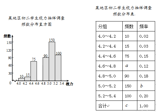 )均属正常,根据抽样调查数据,估计该地区6200名初二年级学生视力正常的有 人.