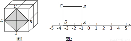 (3)把正方形ABCD放到数轴上,如图2,使得A与﹣1重合,那么D在数轴上表示的数为 .