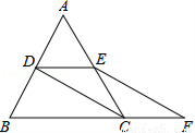 如图,等边△ABC的边长是2,D、E分别为AB、AC的中点,延长BC至点F,使CF=