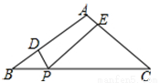 △ABC中,AB=AC=5,BC=8,点P是BC边上的动点,过点P作PD⊥AB于点D,PE⊥AC于点E,则PD+PE的长是________.