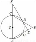 如图,在△ABC中,以AC为直径作⊙O交BC于点D,交AB于点G,且D是BC中点,DE⊥AB,垂足为E,交AC的延长线于点F.