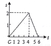 如图,四边形ABCD是边长为2cm的正方形,动点P在ABCD的边上沿A→B→C→D的路径以1cm/s的速度运动(点P不与A,D重合)。在这个运动过程中,△APO的面积S(cm2)随时间t(s)的变化关系用图象表示,正确的为( )