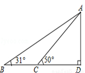 据调查,超速行驶是引发交通事故的主要原因之一,所以规定以下情境中的速度不得超过15m/s,在一条笔直公路BD的上方A处有一探测仪,如平面几何图,AD=24m,∠D=90°,第一次探测到一辆轿车从B点匀速向D点行驶,测得∠ABD=31°,2秒后到达C点,测得∠ACD=50°(tan31°≈0.6,tan50°≈1.2,结果精确到1m)
