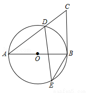 如图,在⊙O中,AB为直径,D.E为圆上两点,C为圆外一点,且∠E+∠C=90°.