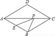 如图,菱形ABCD中,AB=2,∠BAD=60°,E是AB的中点,P是对角线AC上的一个动点,则PE+PB的最小值是( ).