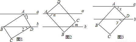 (2)图2,若点D在直线a的上方,点C在平行直线a,b内,点B在直线b的下方,m,n表示角的度数,请写出m与n的数量关系并说明理由;