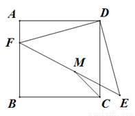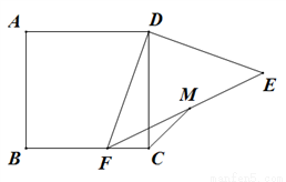 (满分14分)已知,四边形ABCD是正方形,点F是边AB、BC上一动点,DE⊥DF,且DE=DF,M为EF的中点.