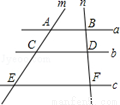 如图,已知直线a∥b∥c,直线m,n与a,b,c分别交于点A,C,E,B,D,F,若AC=4,CE=6,BD=3,则DF的值是( )