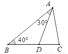 如图,在△ABC中,AD平分∠BAC且与BC相交于点D,∠B=40°,∠BAD=30°,则∠C的度数是________度.