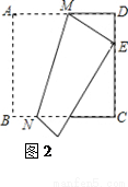 (2) 如图2,正方形ABCD边长为12,将正方形沿MN折叠,使点A落在DC边上的点E处,且DE=5,求折痕MN的长。
