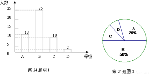某校为了了解九年级学生体育测试成绩情况,以九年级(1)班学生的体育测试成绩为样本,按A、B、C、D四个等级进行统计,并将统计结果绘制成下两幅统计图(如图),请你结合图中所给信息解答下列问题:(说明:A级:90分—100分;B级:75分—89分;C级:60分—74分;D级:60分以下)