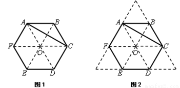 如图,正六边形ABCDEF在正三角形网格内,点O为正六边形的中心,仅用无刻度的直尺完成以下作图.