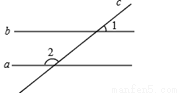 如图,两条平行线a、b被直线c所截.若∠1=40°, 则∠2=________。