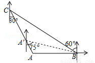 (2)若“中海监50”从A处沿AC方向向岛礁C驶去,当到达点A′时,测得点B在A′的南偏东75°的方向上,求此时“中国海监50”的航行距离.(注:结果保留根号)