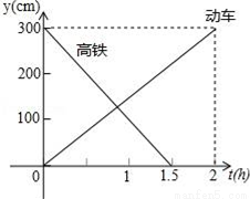 如图,一辆动车从A地开往B地,一辆高铁从B地开往A地.两车同时出发,设动车离A地的距离为y1(km),高铁离A地的距离为y2(km),动车行驶时间为t(h),变量y1、y2之间的关系图象如图所示: