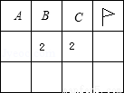 Windows2000下有一个有趣的游戏“扫雷”,下图是扫雷游戏的一部分:(说明:图中数字2表示在以该数字为中心的8个方格中有2个地雷).小旗表示该方格已被探明有地雷,现在还剩下A、B、C三个方格未被探明,其它地方为安全区(包括有数字的方格)