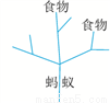 一只蚂蚁在如图所示的树枝上寻觅食物,假定蚂蚁在每个岔路口都会随机地选择一条路径,则它获得食物的概率是( )