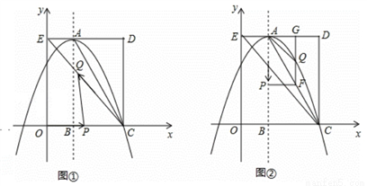 如图,在平面直角坐标系中,矩形OCDE的三个顶点分别是C(3,0),D(3,4),E(0,4).点A在DE上,以A为顶点的抛物线过点C,且对称轴x=1交x轴于点B.连接EC,AC.点P,Q为动点,设运动时间为t秒.