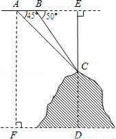 如图,某飞机于空中探测某座山的高度,在点A处飞机的飞行高度是AF=3700米,从飞机上观测山顶目标C的俯角是45°,飞机继续以相同的高度飞行300米到B处,此时观测目标C的俯角是50°,求这座山的高度CD.