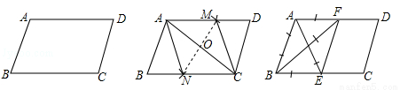 如图,在给定的一张平行四边形纸片上作一个菱形.甲、乙两人的作法如下:甲:连接AC,作AC的垂直平分线MN分别交AD,AC,BC于M,O,N,连接AN,CM,则四边形ANCM是菱形.