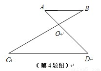 如图,已知AB∥CD,AD和BC相交于点O,∠B=25°,∠AOB=105°,则∠D等于( )