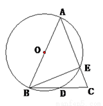 如图,AB为⊙O的直径,AB=AC,BC交⊙O于点D, AC交⊙O于点E,∠BAC=45°。