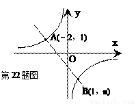 (本题满分6分)如图,一次函数y=kx+b的图像与反比例函数y=
