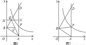 如图1所示,已知函数y= (x>0)图像上一点P,PA⊥x轴于点A(a,0),点B坐标为(0,b)(b>0) .动点M是y轴正半轴上点B上方的点.动点N在射线AP上,过点B作AB的垂线,交射线AP于点D,交直线MN于点Q.连接AQ,取AQ的中点C.