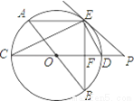如图,AB、CD为⊙O的直径,弦AE∥CD,连接BE交CD于点 F,过点E作直线EP与CD的延长线交于点P,使∠PED=∠C.