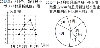 (1)某市2015年1﹣5月份新注册小型企业一共 家,请将折线统计图补充完整.
