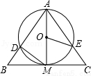 如图,已知AM为⊙O的直径,直线BC经过点M,且AB=AC,∠BAM=∠CAM,线段AB和AC分别交⊙O于点D、E,∠BMD=40°,则∠EOM= .