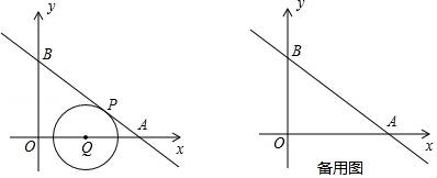 秒.其中点P沿射线AB运动,速度为每秒4个单位长度,点Q沿射线AO运动,速度为每秒5个单位长度.以点Q为圆心,PQ长为半径作⊙Q.