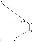 的斜坡CD前进4米到达点D,在点D处安置测角仪,测得旗杆顶部A的仰角为37°,量得仪器的高DE为1.5米.已知A、B、C、D、E在同一平面内,AB⊥BC,AB//DE.求旗杆AB的高度.(参考数据:sin37°≈