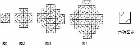 某广场用同一种如图所示的地砖拼图案.第一次拼成形如图1所示的图案,第二次拼成形如图2所示的图案,第三次拼成形如图3的图案,第四次拼成形如图4的图案……按照只有的规律进行下去,第