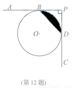 如图,直线AB与CD分别与⊙O 相切于B、D两点,且AB⊥CD,垂足为P,连接BD.若BD=4,则阴影部分的面积为___________________。