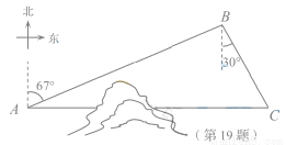 如图,C地在A地的正东方向,因有大山阻隔,由A地到C地需要绕行B地,已知B位于A地北偏东67°方向,距离A地520km,C地位于B地南偏东30°方向,若打通穿山隧道,建成两地直达高铁,求A地到C地之间高铁线路的长(结果保留整数)