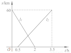 A、B两地相距60km,甲、乙两人从两地出发相向而行,甲先出发.图中